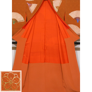 茶地扇散らし文絞り刺繍訪問着(3ツ紋付)